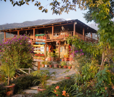 Sip on our signature Himalayan herbal teas, made with locally foraged herbs and flowers, or enjoy a hot cup of masala chai to keep you cozy and connected with nature.